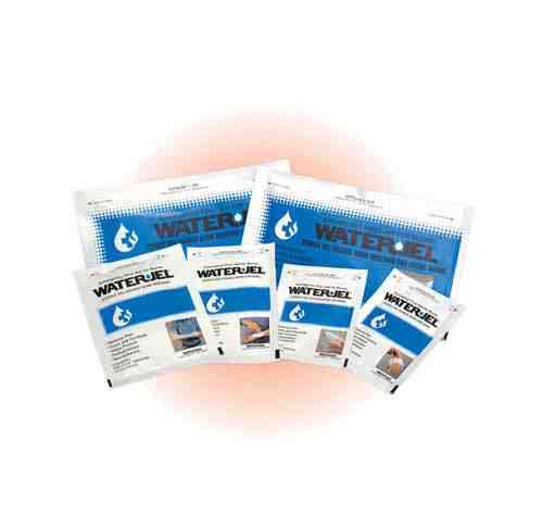 A conveniently sized dressing designed to wrap around the wrist and between the fingers to keep them separated *Water-Jel Burn Dressings provide fast one-step relief for emergency first aid when someone has been burned *The dressing stops burn progression and cools the skin relieves pain and protects against airborne contamination *Water-Jel Burn Dressings are made with a scientifically formulated cooling gel and utilize medical-grade nonwoven pads *They are non-adherent so they will not stick to burn injuries *The dressings are soaked in a water-based / water-soluble bacteriostatic and biodegradable gel and sterilized to ensure a contamination-free atmosphere for emergency treatment of burns *With Water-Jel Burn Dressings it takes no special training to give fast and effective emergency burn care for any type of burn injury *All Water-Jel Burn Dressings have a 5-year shelf life from date of manufacture *Each dressing has a Total Body Surface Area (TBSA) icon that indicates approximate total body surface area covered with the use of that dressing *Foil Pouch 2 x 6 (5 cm x 15.2 cm) *Water Jel sterile dressings are made of a medical grade non-woven material soaked in water-soluble gel *Five-year shelf life