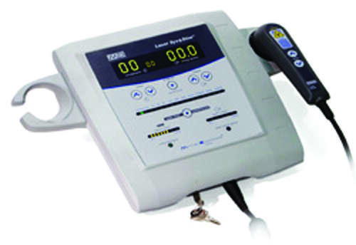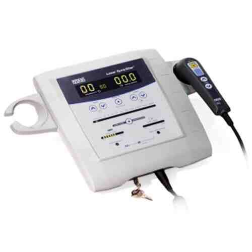 Laser With 785 NM Applicator * The emerging light therapy technology uses infrared energy to provide patients with a temporary increase in blood circulation temporary relief of minor muscle and joint aches pains and stiffness relaxation of muscles and temporary relief of minor pain and stiffness associated with arthritis * Wavelengths between 660 and 1 000 nm are used for this purpose * Light emitted by the laser diode penetrates deepest followed by the superluminous diode (SLDs) and then the light emitting diode (LEDs) * The Mettler Electronics Laser Sys*Stim comes with a 785 nm laser probe with visible blue LEDs that illuminate the treatment field * An optional SLD/LED cluster probe with 950 nm SLDs and 660 nm LEDs is also available * The Laser Sys*Stim allows the clinician to set treatment time continuous/pulse modulation modes and laser output energy * All treatment parameters are displayed on the LED displays and controlled via the membrane keypad * There are holders integrated into the unit to store applicators when not in use * Laser output can also be adjusted via controls on the both laser and cluster applicators * Weight: 5.5 pounds (2.5 kg) * Dimensions: 4.7 H x 9.4 D x 9.4 W * Warranty: 2 years on unit 1 year on applicators and cables *