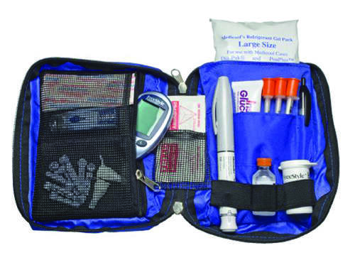 * The most compact way to organize and carry insulin pens bottles or pre-drawn syringes * A refreezable gel pack provides cooling for enhanced protection (included) * Can be carried by hand in your purse or a briefcase * Durable nylon - hand washable * Easy-view mesh pockets * Holds swabs & pen needles * Dimensions: 6.5 x 8 x 1 * Contents not included