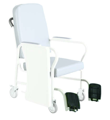 Recliner * Left and right arms drop to aid in transfers * Seat has a self-adjusting elastic webbing suspension system that wont flatten * 3 positions; upright legrest/footrest elevated and deep recline plus fully enclosed side panels * Blow-molded tray is stored on side * 5 casters (2 fixed - 2 swivel with total lock) * Wide armrest slopes down to give forearm correct support * Moisture barrier on seat * 3 medium density polyurethane foam back * Built-in headrest * Seat Width: 19 Overall Width: 26 * Weight Capacity: 275 Lbs. * HCPC Code: E1031