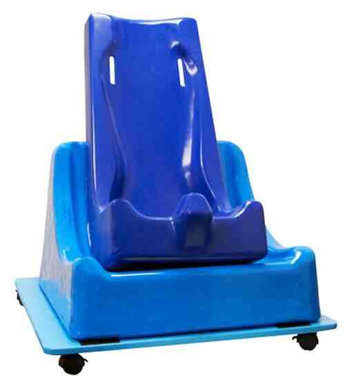Basic positioning; seat has built-in abductor posturally correct contoured interior and a safety harness * Convert to floor sitter by adding wedge * Add base to make mobile *
