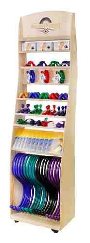 This flexible 2-sided rolling display unit is built from solid wood and will hold a maximum of 81pieces. You can mix and match Pressure Positive products on this unit to best fit your needs. * 21 W x 14 D x 77 H * Weight: 35 lbs * Includes: 17 Knobble II 20 Backnobber II w/Manual 4 Vibrassager 12 Index Knobber II 8 Palmassager 3 Orbit Massager 12 Jacknobber II 3-18 Tiger Tail 2-22 Tiger Tail