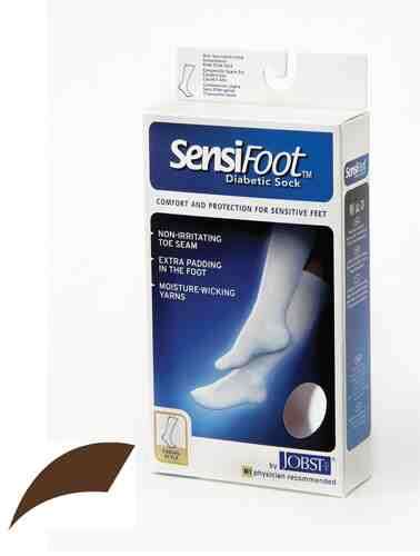 Jobst Sensifoot Diabetic Sock 8-15 mmHg Crew Mild Compression Socks * Ultimate comfort and protection available in a unisex mid-calf diabetic sock * Mild non-constricting gradient pressure prevents sliding bunching or wrinkles * This support sock stays in place * Dense padding in the foot heel and toe reduces friction and provides cushioning for extra comfort * Non-irritating smooth flat toe seams reduce irritation and pressure on sensitive toes and skin preventing skin abrasions * Antimicrobial finish helps prevent growth of bacteria and fungi on the sock helping to eliminate unpleasant foot odors * Moisture wicking acrylic fibers help keep feet cool and dry throughout the day * Machine wash in a mesh laundry bag or hand wash with warm water using a mild soap or detergent designed for compression stockings * Machine dry on low heat * Latex free 80% acrylic 17% nylon 3% lycra * 8-15 mmHg Mild Gradient Compression Indication Guide: * Discomfort from spider veins * Relief from minor leg swelling * Relief of tired aching legs * Relief of leg discomfort during pregnancy * Minor varicose veins For wear following sclerotherapy * Helps Prevent DVT (Deep Vein Thrombosis) * Large * White * Shipping Carton Size: 12 L x 10 W x 6 H