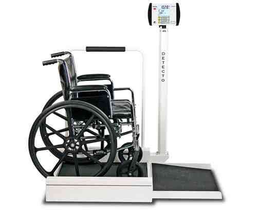 DIGITAL * Pounds & Kilograms * 30 x 26 platform with non-skid mat * Designed to accomodate all sizes of wheelchairs * Padded handrail for ambulatory patients * Ramp is designed for a smooth approach and exit * White with black mat and hand grips * weight capacity: 400 Lbs x 0.2 Lbs * Height: 36 * 1 Year Warranty *