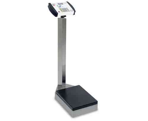 Pounds & Kilograms * With Height Rod * The heavy-duty understructure of this digital eye-level scale incorporates a fabricated lever system that is enhanced by precision-ground pressed-in knife edges which eliminate friction * This scale also features at-a-glance convenience of the battery-powered LCD display * Display functions include auto off/release of display automatic zero and motion detection * With the push of a button readings appear in pounds OR kilograms * The platform cover is easily removed for cleaning * Metric only models and handpost are also available * Weight Capacity of 400 Lbs. x 0.2 Lbs. * Height rod adjusts 30 to 78 and 75 cm to 192 cm * Platform size: 10.5 x 14.5 * White with black mat * Scale height: 59 * Display: .7 high-contrast LCD * Power source: 6 C size alkaline batteries * 1 Year * The height rod is black with white numerals and are graduated in both inches and centimeters * Features Body Mass Index calculation WarrantyShipping Carton Size: 58 L x 24 W x 14 H