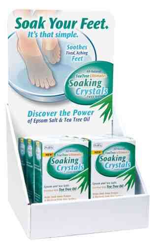 Includes 6 boxes of Soothing Crystals * Helps soak away fungus and bacteria from skin surface * Is a therapeutic foot soak featuring our exclusive blend of tea tree and peppermint essential oils Epsom salt and sea salt * This invigorating soak soothes aches and pains relieves itching and softens corns and calluses while fighting fungus and bacteria * Leaves feet feeling refreshed clean and smelling great *