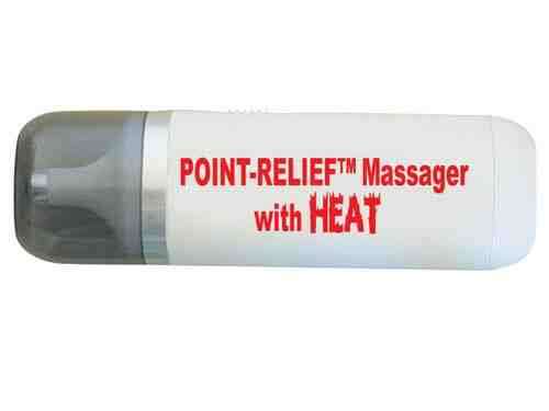 Massager with heat * Comfortable vibrating trigger-point massage * Compact portable small enough to fit in purse or pocket * Battery operated (uses 1 C battery) * Attachments have plastic stems with rubber heads (tips).