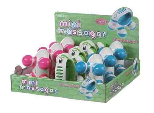 Battery operated massager (2 AA included) * Try Me feature * Countertop display of 9 pieces available if ordered under #6110 * Pre-assorted colors * Item is bulk packed
