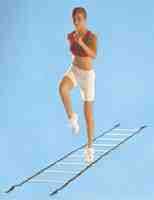 This 15 ladder has 9 rungs that can easily be moved to adjust the stride length * The straps on each side are woven through 2 holes on each side of the ladder * Simply slide the rungs to adjust the spacing * Use for agility and speed training * May also be used as a step gauge for gait training * Ladder is 20 wide