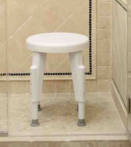 * Allows for easy transfer into and out of the shower and provides a safe comfortable seat for people who have difficulty standing for any length of time * Conveniently sized to fit into small spaces * Height adjustable legs: 16 to 21 * Non-slip feet hold it securely in place * Easy to assemble; no tools required * Seat diameter: 15.5 * 300 lb weight capacity * Width between legs 15