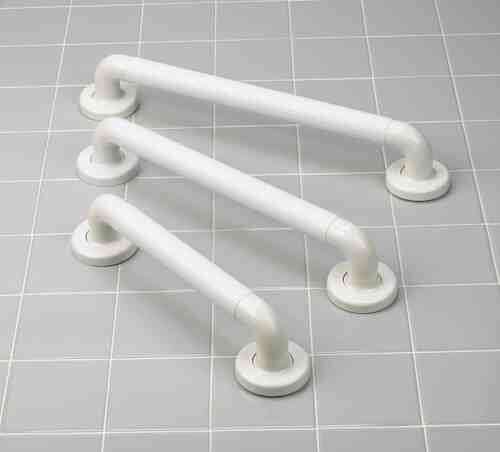 Attractive wall mounted plastic grab bars with grooved surfaces provide a secure non-slip grasp - even when wet *Mounting brackets conceal the installation screws *1 1/2 (3.8 cm) diameter *Distance from wall to bar is 2 (5 cm) *Hardware and detailed installation instructions included *18.75 x 3.5 x 3.25
