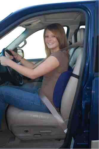 Color Blue * Cushion made from contoured foam with side support wings provides medium to firm support and helps keep you sitting properly * Use at home office or in your car * Attached positioning belt keeps cushion in place * Deluxe Rest covered with a plush polyester for added comfort * 13 x 14 (33cm x 35.5cm)