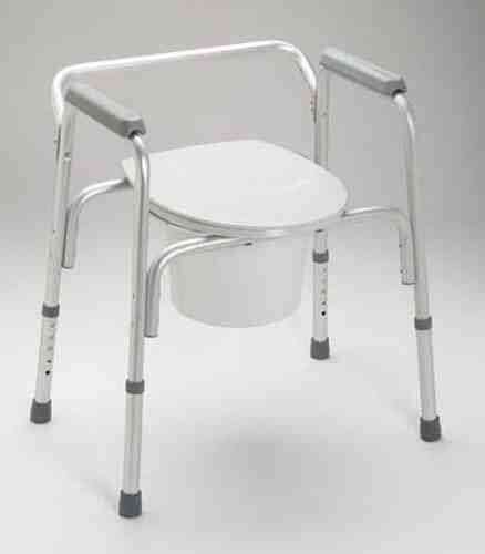 Designed to accommodate lateral transfers * Arms drop with a push of a button for unrestricted left-to-right leg movement * Hard chrome plated steel frame is rust resistant and offers greater durability * Foam handgrips wont slip even if wet * Backrest can be removed for use as an over-the-toilet safety frame * Pail lid and splashguard included * Limited lifetime warranty